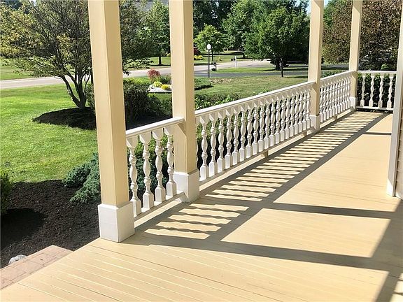 Victorian style 4br/2.5 bath home, w vaulted/high ceilings, in well sought after neighborhood! Grand foyer with hw floor, powder room and lovely staircase, formal lv room and formal dining room, bright breakfast/dinette bay area w tall arch windows off the modern kitchen with built-in hutch, solid surface counter, new gas cooktop & dishwasher, side-by-side refrigerator, built-in oven & microwave, open to spacious family room w gas fireplace. Side entrance and the two-car, attached, garage entrance lead to an amazing space as a mudroom/office area. First floor master suite, complete with jetted tub and separate shower. Charming wrap around front porch, back stamped concrete patio over looking deep backyard! Plus, BRAND NEW FORCED AIR FURNACE, CENTRAL A/C AND HW TANK, FEBRUARY 2020!!