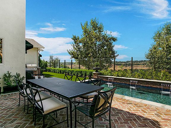 Stunning Father of the Bride inspired colonial estate situated on one of the premier VIEW lots in all of Ladera Ranch! Fully renovated with over $350k in recent upgrades including: new Pebble Tec pool and backyard, indoor/outdoor bathroom addition, kitchen, master bath, guest bath, kid's bath and laundry room remodels, custom built-ins, PEX repipe, whole house water filter and whole house fan. The interior features 5 bedrooms (4 upstairs, 1 down), 4 bathrooms, a workout room, bonus room/loft, library, mudroom, and his and hers walk-in closets. The professionally landscaped exterior features custom herringbone brickwork, wrought iron fencing and gate, a rose garden, citrus trees, and a porte cochere driveway with 3-car garage. Premium finishes include Wolf/SubZero appliances, Rohl fixtures, premium Italian marble, and custom hardwood floors throughout. Enjoy sunset views over the Arroyo in this truly one-of-a-kind property!