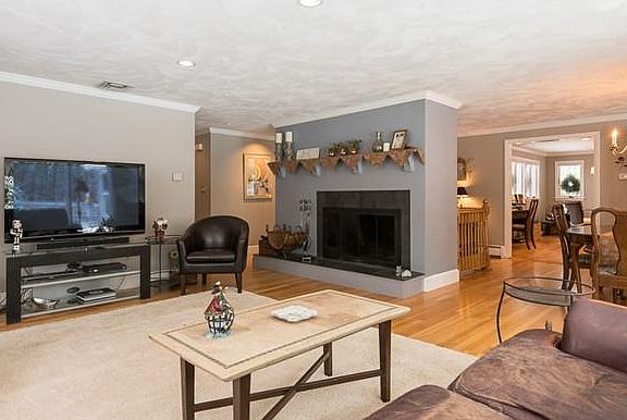 Charmingly positioned on much-beloved Mast Hill cul de sac this lovely home is hosted by mature trees & a peaceful setting. Among the many spaces for family life & entertaining is an oversized eat-in kitchen featuring large granite island with seating, Bosch SS appliances incl double wall ovens & a pantry down a short hallway w/ half bath & laundry area. The kitchen flows to dining room which shares open space w/ living area, abundant in natural light fr oversized windows, & captures the outdoor beauty fr inside. The focal point is a striking slate fireplace. Step down from DR to an inviting cathedral sunroom leading to expansive tiered deck overlooking beautiful yard and in-ground pool. All 4 BRs inc master feature HW fls & ample closet space; master w/ bath & 2 double closets. Finished LL offers substantial space: family room, rec area, office, exercise rm and workshop & provides direct access to backyard. This is your chance to live in a highly desired South Hingham neighborhood!