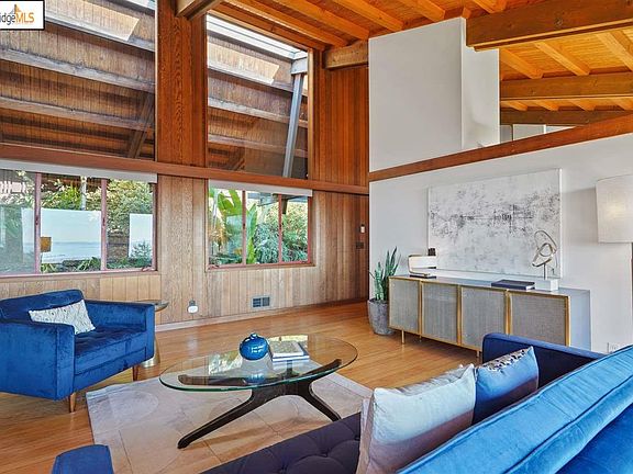 Tucked away on a private road in the Berkeley Hills, this Robert Ratcliff designed midcentury gem with sweeping unobstructed views of the Bay is a stunning architectural retreat surrounded by nature, while located just minutes away from the gourmet delicacies of Shattuck Ave, UC Berkeley, Cordonices Park, Berkeley Rose Garden and Tilden Park. This spacious, light-filled 2,485 square feet home boasts unique original design details and natural wood throughout, from vaulted beam ceilings to large glass windows and an open floor plan. Enjoy spectacular views of the Bay from all rooms. This home is perfect for those working remotely given the ample space for 2 home offices wired for high speed fiber internet and, when you need a break from Zoom meetings, relax and melt your stress away in your custom teak soaking tub. This home is flanked by multiple decks and patios and, with a lot size of 8,343 square feet, there are endless possibilities for outdoor living, gardening, etc.