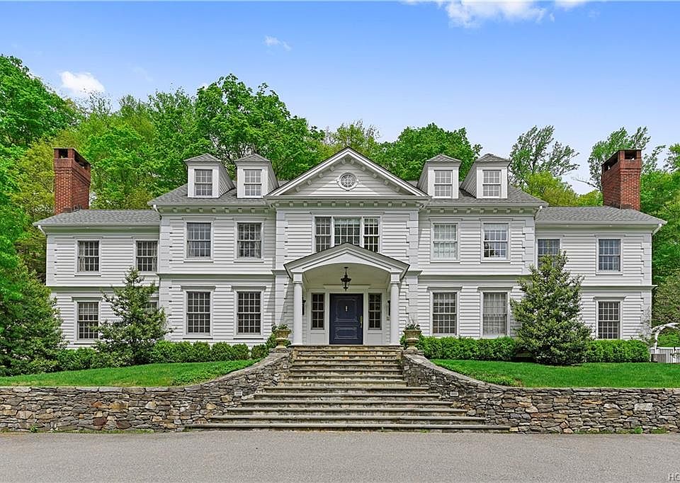 CLASSIC STUNNING STYLE - Handsome Clapboard Colonial with great lines and proportions. Impeccable interior with perfectly proportioned rooms and fine finishes. Classic moldings, extensive millwork and the finest materials combine to create a timeless living space. Center Entrance Hall. Sophisticated Living Room with Fireplace. Paneled Library with fireplace. Formal Dining Room for elegant entertaining. Butler's Pantry to Chef's Kitchen with Breakfast Room. Spacious Family Room with Fireplace. Priavet Master Suite with Fireplace, Sitting Room and opulent Bath. Private Guest Suite with Fireplace and Bath. Three additional Bedrooms all with en suite Baths. Fabulous rear terrace with built-in grill overlooking the Swimming Pool and Spa. Over eight private acres with specimen trees and shrubs. Bedford Schools. Perfection!