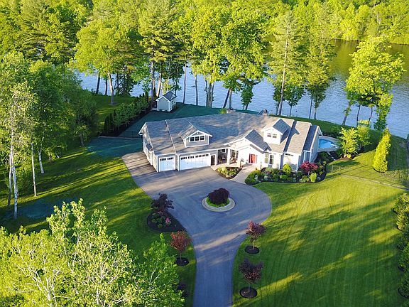 No expense spared on this beautiful 3600 Sq.Ft. picturesque Hooksett smart home estate. Upon entering, you will be greeted by an expansive open floor plan with 10ft craftsman columns, wainscoting and vaulted ceilings. Large windows allow natural light to flow throughout with views of the the backyard resort. Luxurious master suite boasts floor to ceiling marble tile, dual custom built vanities, massive walk-in closet, 9ft. wide walk-through marble shower with 9 shower heads, 6ft cast iron clawfoot slipper tub with polished nickel faucets, and an on-suite washer and dryer. High velocity geothermal air-conditioning and radiant geothermal heat keep the air comfortable. Breath taking open concept kitchen with massive granite island, built-in farmers sink, and top of the line faucet fixtures surrounded by gorgeous custom built-in cabinetry accented with bright subway tile back splash and GE Profile stainless appliances. Upstairs you will find an elegant entertainment lounge complete with movie setup and fully functional wet bar rivaling the standards of any high-end martini lounge. Walk out to your own private backyard resort with plenty of living area complete with fireplace, TV, lagoon style pool and breathtaking views of the river. Enjoy your own private dock with miles of open water for kayaking, boating, and water skiing. Full bath access right from pool area. Whole house audio inside and out. Come see all the charm and attention-to-detail this estate has to offer.