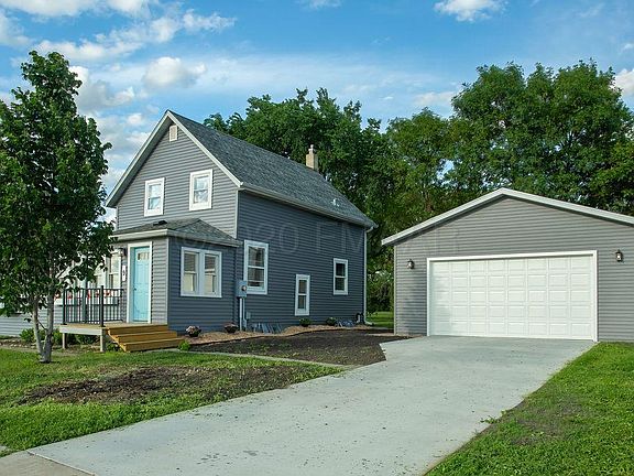 This home has been extensively renovated, and shows VERY much like new. New Garage, siding, flooring, cabinets and quartz countertop.. See the complete list of improvements under documents. The lot is gigantic, with many large shade trees. Plus, it backs to a green space that was once the school football field. Pre-K -6th school in Mapleton, with choices for 7-12 Casselton or WF. Buses come for each. Basement unfinished, great for storage.. Another single garage is at the back of the lot.