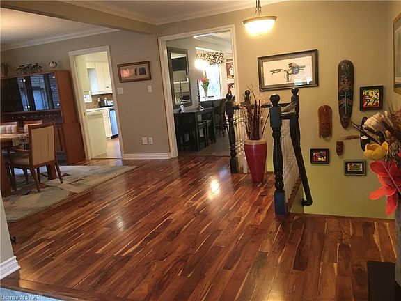 A rare 2000+ sqft bungalow! Located in a mature subdivision and backing onto the Steve Bauer Trail. Built by Luchetta Homes, many quality upgrades have been completed by the current home owner. The redesigned open layout creates a warm comfortable flow from the moment you walk through the entrance to this home. A spacious entrance opens to the living room, dining room, family room and the kitchen. The kitchen is a chef's delight with gas stove, two ovens, stainless steel fridge and dishwasher, and a large granite counter preparation area. The open concept allows the chef to entertain guests in the family room while preparing their feast. The family room features a gas fireplace and surround sound. A slight turn to your right from the entrance you will find three large bedrooms. The primary bedroom has an ensuite spa and a walk-in closet. The main floor is accented with crown molding and hardwood, cork and tile flooring. No carpeting. From the entrance, you can make your way across the floor to the oak staircase case that will lead you to an astounding lower level that features a redesigned and tastefully finished in-law suite. The in-law suite has a full kitchen with dinette, a four piece bath with heated floors, a large bedroom and an impressive great room. This area also features engineered hardwood and large windows for plenty of natural lighting. In addition the lower level has an additional family room/bedroom, storage room, laundry room and utility room. On this level there is a separate entrance at ground level, that leads to the backyard and a large stamped concrete patio. The wooded area behind this provides all the privacy that you need and access to the trail that runs behind this home.