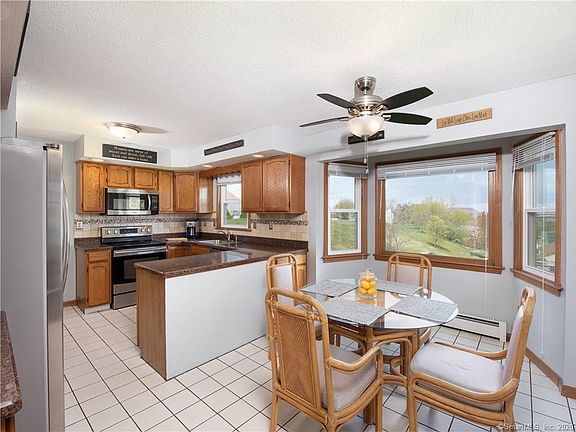 Welcome Home to 9 Milici Circle in the picturesque Schwink's Hill neighborhood on Meriden's East Side This 4 bedroom, 2.5 bath colonial has been meticulously maintained and loved by it's original owners since it was built and offers sprawling mountainous views over the town. Spacious and open yet cozy and inviting, this home boasts great qualities such as: 2 updated full bathrooms, kitchen with new granite counters, tile backsplash, fresh paint, and stainless steel appliances, a great room with vaulted ceilings, floor to ceiling stone fireplace, and a slider leading out to a back deck, spacious bedrooms and master bedroom with bathroom en suite and walk-in closet, 2nd floor laundry, central vacuum, gas heat and more Located in the Thomas Hooker school district and close to the Wallingford line with convenient access to food, shopping, & highways. From the second you pull up you'll see why this house should be your next home