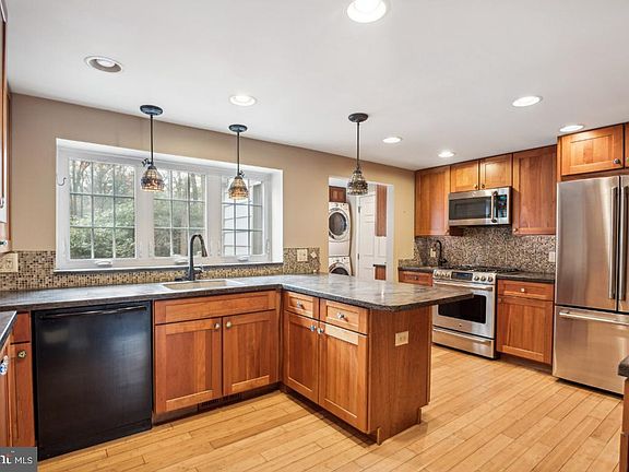 Welcome to this charming 4-bedroom, 2.5-bathroom home with a 2-car garage, located in the peaceful Charleston Riding neighborhood of Cherry Hill. Situated on a quiet, tree-lined street, this two-story home is perfect for young families, professionals, or anyone in need of a dedicated home office space. Inside, you'll discover a thoughtfully designed layout that blends comfortable living spaces with a sense of connection to nature, offering the perfect balance of convenience and tranquility. The home provides a great foundation for personalization, while also featuring key updates such as a beautifully appointed kitchen, a one-year-old roof, and a newer HVAC system. The hardwood and bamboo flooring throughout add warmth and style, while the dining and living rooms are enhanced by elegant crown molding and chair rails. Step outside to relax on the bamboo deck, which overlooks a peaceful backyard—ideal for both entertaining and quiet moments. A greenhouse completes the connection to nature. Whether hosting family and friends or enjoying a cozy evening at home, the indoor and outdoor spaces create a welcoming atmosphere. Don't miss out on the opportunity to make this delightful home your own—schedule a showing today!
