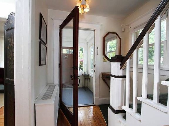 Nothing says Americana more than this charming vintage Colonial. This quaint in-town location offers easy access to the best Bville has to offer. Perfect townhouse alternative w/many storage options. With 2 bedrms and 1 1/2 bths, this home has hardwood floors, updated kitchen and baths, walk-out basement and a large vaulted walk-up attic. With the living room open to the dining room the home feels spacious and inviting, perfect for entertaining. The kitchen, pantry and 1/2 bath complete the first floor space. The deck off the dining room overlooks the back yard and woods.The second level has two bdrms, an updated full bath with tub/shower and a walk-up attic just waiting to be finished. A rare find at a great price. Water heater and new storm doors 2011. Automated boiler flushing, no need for monthly purging.