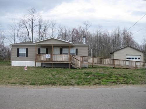 Very nice 3/2 mobile, fireplace, 12X20 covered porch, 20X24 detached garage, financing available through Vanderbilt Mortgage and Finance, Inc.also another porch added in the back an it's an 10 x10 deck in the back ..pond in backyard beautiful 1 and half acres ,golf course across the street, cash point church one house away,hwy 110 is a house away.
