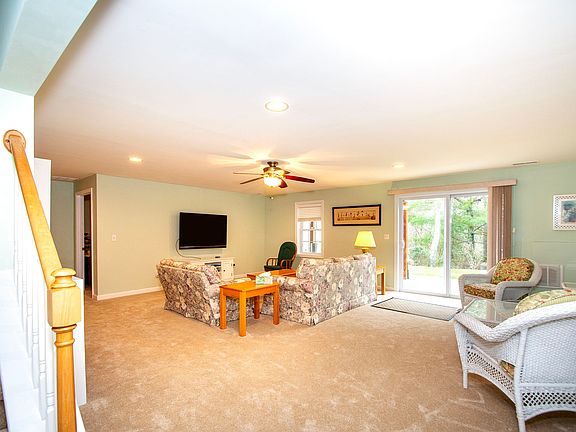 One of the finest Franklin model homes in Great Island at The Pinehills! Ideally located on a quiet corner lot in a cul-de-sac, this home offers exceptional privacy and scenic, bucolic views. The single-level main floor features two bedrooms, including a primary suite, two full bathrooms, a well-appointed kitchen, a dining room, a spacious living room, and a bright four-season room just off the living area. The partially-finished, walkout lower level expands the living space with a generous family/den area, a bonus room -- perfect as a third bedroom or office, and a full bathroom. Outdoor living is just as impressive, with an expansive composite wraparound deck and serene surroundings. This home is the perfect size for those looking to downsize without sacrificing space for guests. Many recent upgrades—ask the listing agent for details. A must-see!