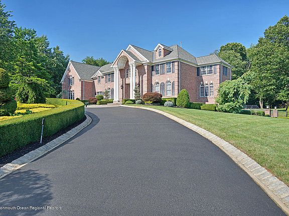 Location Location Location! An opportunity to live on one of Colts Neck's most luxurious streets! This 4 sided brick estate features a 3,000 square foot walkout full finished basement, incredible eat in kitchen with Viking stainless steel appliances, an amazing molding package, large master bedroom suite with double sided fireplace, a very private setting on a cul-de-sac street, 2 laundry rooms, beautifully designed red oak hardwood floors throughout, marble tile in the large two story foyer, porcelain tile in the kitchen, and a grand manor roof. Every bedroom has its own bathroom. The backyard backs to woods and is complete with a putting green.