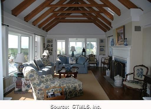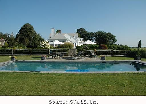 This home is one of the rare private locations in historical Fenwick (a borough within Old Saybrook CT) that sits at the mouth of the CT river where it meets Long Island Sound. This well-appointed home has water views from every room. Both of the historical "inner" and "outer" lighthouses at the mouth of the river and the outline of Long island 7 miles away are seen from the expansive, private large bluestone terrace off the living room, sun room and kitchen. A 20' X 40' heated pool with it's own terrace and extensive landscaping provides the a similar view. The home is situated between the 2nd and 3rd hole of a historical 9 hole "links" golf course and a protected nature preserve with a constant display of native birds and wild life.