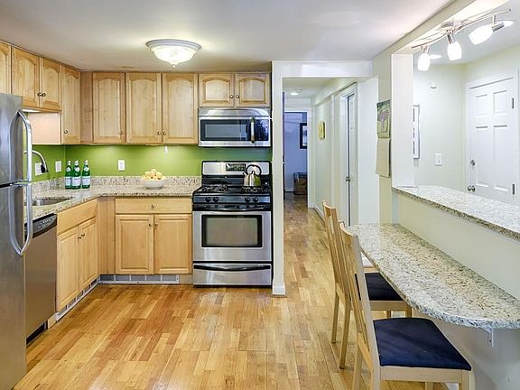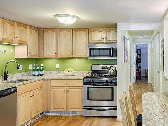 OH Sat 5/19 11:30-1, Sun 5/20 2-3:30. Why rent when you can OWN? Incredible opportunity to live in a spacious, sun splashed 2 BR home with 2 DEEDED PARKING spaces! Private entry. Open concept living/dining kitchen with granite two-tier breakfast bar with designer lighting. Fully applianced custom chef's kitchen with Stainless Steel appliances, gas cooking & granite countertops. Amazing kitchen storage in beautiful maple cabinetry. Hardwood floors throughout. 2 BR's with large closets, windows everywhere! Large & fully appointed tile bathroom. Large linen closet. Access to full size washer/dryer. Enormous yard for the gardening enthusiast. Storage shed! Convenient location. 5-10 min walk to MBTA "B" & "C" line. On bus Rte 65 to Longwood Medical. Walk to whole foods, Brighton Center & St. Elizabeths.