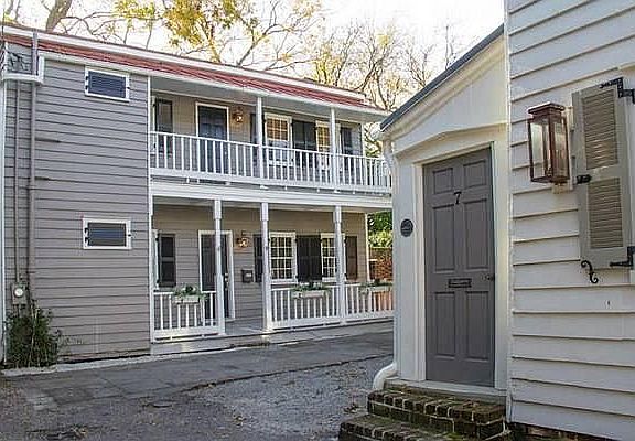 Charming 1800's single family home in a prime downtown location with plenty of off-street parking! This home sits in a quiet court, retaining original brick fireplaces and antique wide-plank heart of pine floors in the living spaces, hallways, and bedrooms. Functional open floor plan downstairs with a bathroom, two bedrooms with en suite master bath upstairs, and a convenient laundry closet in the kitchen.