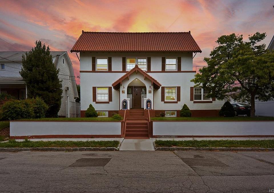 Grand Mediterranean style single family in sought out area of New Rochelle. This 5-bedroom, 3-bathroom house features 2,435 sq ft of living space. The home features hardwood floors throughout and high ceilings. First floor has a large living room with a fireplace and balcony. Large eat in kitchen with a side porch leading to a patio with an over sized backyard. One car garage. Second floor has four spacious bedrooms with two full bathrooms. Conveniently located near public transportation and major highways.