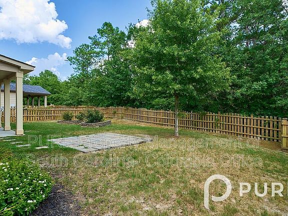 Gorgeous 4 bedroom, 3.5 bath home in the Sandy Glen subdivision in Lake Carolina in NE Columbia. Covered front entry, 2-car garage, and great fenced backyard w/ covered and additional patio space perfect for relaxing or entertaining. Inside boasts beautiful hardwood and tile flooring, custom moldings, and granite counter tops. Coffered ceiling in the formal dining room off the two-story foyer. Family room features a stone gas log fireplace and bar. Bay window breakfast dining area open to the kitchen island counter bar and built-in workspace. Kitchen has custom lighting, tile backsplash, and walk-in pantry. Included stainless steel wall oven, gas range, built-in microwave, dishwasher, and side-by-side refrigerator. Half bath and laundry/mudroom off kitchen. Downstairs primary bedroom suite has a trey ceiling, full bathroom w/ double sinks and soaking tub, separate shower, and walk-in closet. Bonus sitting area off upstairs landing. Two of three additional bedrooms have share a pass-thru bathroom; 4th has full private bath. Walk-ins and ceiling fans in all. Convenient to I-20, Fort Jackson, Lake Carolina and NE amenities. Richland 2 schools. All PURE Property Management residents are enrolled in the Resident Benefits Package (RBP) which includes renters insurance, HVAC air filter delivery (for applicable properties), credit building to help boost your credit score with timely rent payments, $1M Identity Protection, move-in concierge service making utility connection and home service setup a breeze during your move-in, our best-in-class resident rewards program, and much more! More details upon application. This property comes equipped with Gig-Speed Internet at $65.00/month!! Amenities: patio, 2 - car garage, covered front entry, fenced backyard w/ covered deck