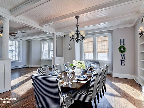 Come Check out this beautiful, completely remodeled 4 full bedrooms and 2 full bath Colonial. This amazing property has a sprawling and bright first floor layout with plenty of open space for entertainment. The rooms feature custom moldings and built-ins. Gleaming hardwood floors with inlay cover the second floor and add so much charm. Finished attic space with easy access. 2 stunning remodeled full bathrooms. Full basement and a cute backyard. Nice proximity from the beach! Last but not least, this property has a massive detached garage with huge 2nd floor storage space.