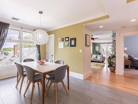 Beautiful, bright and fresh 3+ bed two-story home with entertainment-size decks and 2 off street parking in Arlington Heights, one block to Mass Ave and a short walk to Whole Foods. Stunning and open 9' high ceiling double living room with modern gas fireplace, extra large windows and light stained oak floors. Enjoy sunrises on the grand and glorious front covered deck. The Chef kitchen with a central island for prep work and top of the line appliances opens through French doors to a Southwest facing large deck for summer hang outs and dining. The main level has one bedroom and a full bath. The lofty top floor houses a family room/ office with picture window to skyline, an expansive master bedroom with cathedral ceilings, terrific far-distant view, walk-in closet and built-ins, - a 3rd bedroom, a laundry room and a 4-piece marble bathroom with dble vanity, tub and shower. Central heat/cool. Renovated with exquisite attention to details. Just featured in the Boston Magazine