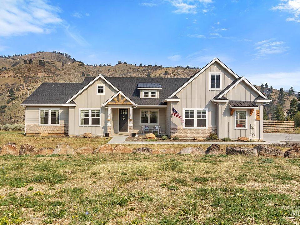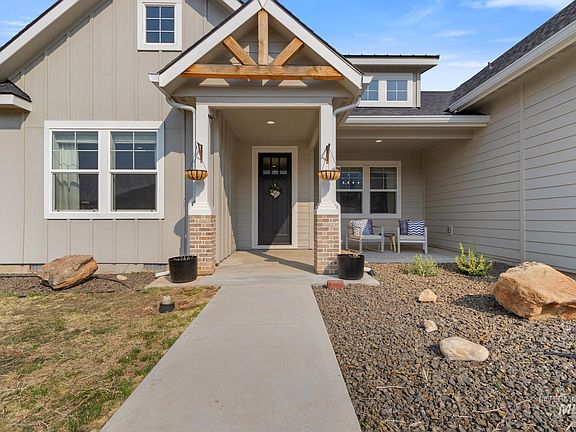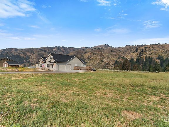Welcome to this beautifully designed custom home, perfectly nestled on over 2ac of Idaho landscape surrounded by breathtaking views & year-round outdoor recreation. This property offers Adventure—just minutes from Lucky Peak, Boise shopping & nearby hot springs. Step inside to discover an open & thoughtful floor plan featuring 3 bedrooms, 2.5 bathrooms, a dedicated den or optional 4th bedroom & a large upstairs bonus room complete with a kitchenette—ideal for entertaining, guests, or multi-generational living. The heart of the home is a gourmet kitchen, showcasing a stunning island, custom floor-to-ceiling cabinetry & a generous pantry. The open-concept main level flows effortlessly into a cozy living space, perfect for gathering. Retreat to the luxurious master suite with a spa-inspired bathroom with dual vanities, a walk-in shower & spacious walk-in closet. Outdoor living is equally impressive with a covered patio where you will appreciate frequent sightings of elk, deer, and birds in a serene setting.
