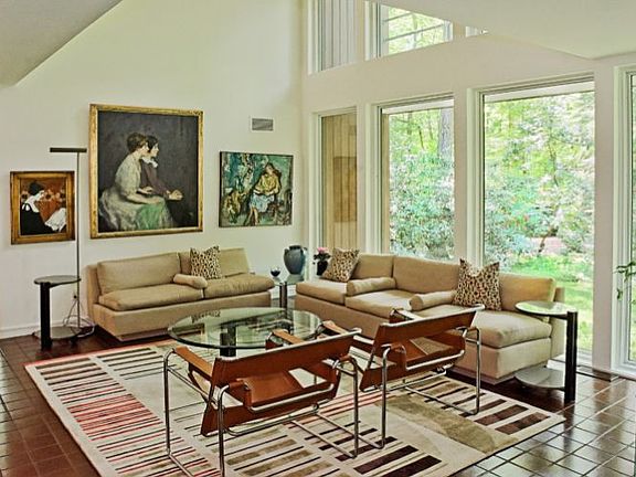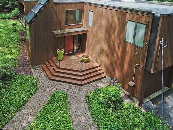 1st time on market! Mid-century contemp "Bauhaus" style by Nadasky Kopelson architech firm.Exquisite 4BR 2.1BTH home on 4.9 priv. wded acres - a true Shangri-la. LR KIT FP in "as Is"no known defects New generator, solar assisted hot water, open floor plan, see thru FP in LR Kit, fin.bsmt, gourmet kit, new furnace, Redwood decks, hdwd, tiled and carpeted flrs, 3 zone Heat and A C, skylight, and sec.system are just a few features of this home.The LR vaulted ceiling w wall of windows greets you as you enjoy wooded views from each corner of this home. 2nd flr w MBR ensuite, MBTH w jetted tub and steam shower.Loft area w home off., a separate wing w exercise rm office, and 3 bdrms. Find privacy on the deck yet home is in close proximity to NYC trains, major hghwys, stores, recreation and Award winning Mendham Twp schools.