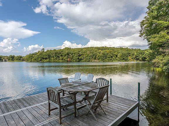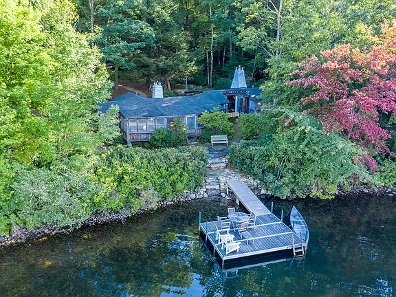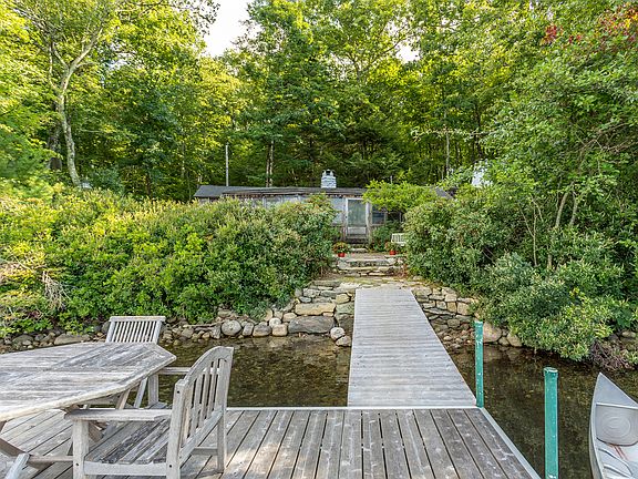 Stunning, private, cottage with gorgeous views and 197 feet of frontage on Mount Tom Pond a 56-acre deepwater Lake which is spring-fed and known to be one of the cleanest lakes in Connecticut. Drive through the state park to a private, dead-end road where the cottage is nestled at the water's edge with land trust to the side. An ample 2.5 acres property ( 1.8 acres of the land behind the house approved for a 4 bedroom house with plans) The yard with wonderful perennial landscaping and early stonewalls, lead to the stone dock and floating deck on the water, perfect for swimming, diving, paddleboarding, kayaking, cocktails, and dinner. Open plan living room and dining room with a floor to ceiling, working, fieldstone fireplace. 3 bedrooms, main bedroom on-suite also features a fieldstone fireplace. Hardwood floors throughout and wood-paneled walls, original structure from 1905, New Septic, Presently three seasons. Close too downtown Bantam and Montessori school.