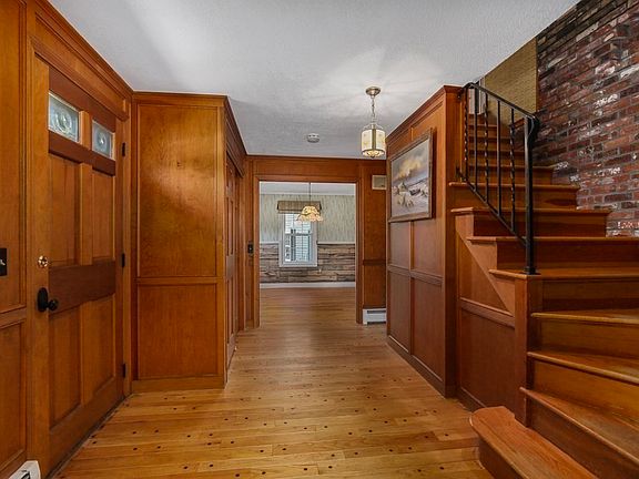 Enter this Classic Custom built 9 room vinyl sided Colonial thru the impressive foyer which features turned straircase and 2 story curved brick wall with wrought iron Juliet balcony/1st floor includes front to back living room with sliders to covered patio & family room with fireplace both overlooking parklike grounds/eat in kitchen, formal dining room, bath & laundry complete the 1st living level/ Hardwood pegged floors in formal rooms/Second floor consists of 5 bedrooms, the primary bedroom is en suite/ additional bath sevices remaining 4 bedrooms one or more of which would be ideal for in house office, craft or guest room/Choose one of 2 staircases to the lower level which is retro and features additional fireplace and great space for gatherings or teens! A two car garage has storage access thru primary bedroom. A home designed for living and comfort with exceptional grounds. A unique opportunity in desirable Paxton neighborhood.New septic to be installed