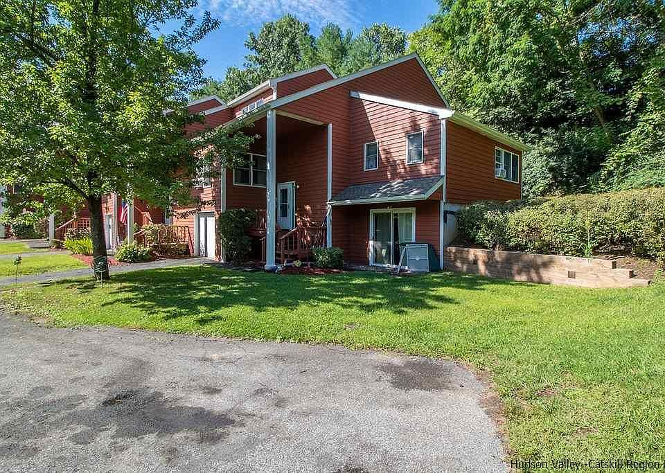 Very nicely done 3 bedroom, 2 bath townhome with a 1 car garage at the end of the lane surrounded by woods on 3 sides.(very private for a townhouse) Spacious living/dining room, large eat in kitchen, skylights, large master bedroom on main level with full bath. On the second floor you will find 2 bedrooms with an additional bathroom and hardwood flooring. Full unfinished basement, laundry room with washer and dryer and garage. Decks on the front and back of townhouse. Landscaping, snowplowing and trash removal included. the Ridge view is a winter view when leaves off the tree Tenant in property showings Need 24 hour notice Wednesday Friday Saturday Monday 12-3 Tuesday 3-5 Shoprite, Walmart, Peter's Market, Restaurant row, Shadowland theatre and the Berme Road hiking access to the top of the Shawangunk Ridge are all approximately 5 minutes away. 30 minutes to Minnewaska park or the Sam's Point access to Shawangunk Ridge. 45 minutes to the malls of Middletown and 1 hour to Bethel Woods for world class music. 13/4 hour to GW bridge or Albany please see in associate docs the story of Ellenville