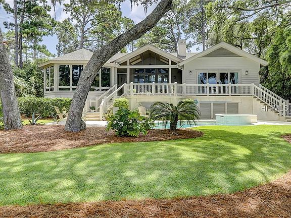 WATERFRONT IN SEA PINES! This deep water property offers sensational views across the Calibogue Sound that stretch out for miles! The sunsets alone will take your breath away. Overflowing with quality, premium finishes, and exceptional craftsmanship. Elevated, expanded, and transformed by Bunting Construction in 2001, then beautifully remodeled by the current owner. Featuring a private pool, pier, and dock (new in '17), gorgeous hardwood floors, designer fixtures, detailed millwork, and a gorgeous chef's kitchen. You'll love this exclusive location on the Calibogue Cay Peninsula where the Harbour Town Lighthouse is just minutes away by boat.