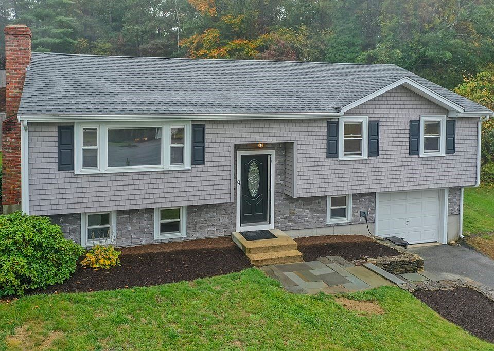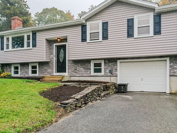 Fully renovated 3-bed raised ranch on quiet culdesac in desirable West Plymouth!Exterior Upgrades:Newer cedar-impression vinyl siding,genuine stone facade,newer roof & windows & upgraded stone walkway. Main floor living has an open floor plan & hardwood flooring throughout.Newly remodeled kitchen w/ quartz counters,upgraded cabinets, new backsplash,stainless steel appliances & deep kitchen sink. Kitchen opens to a formal dining room,a 3-seasons sunroom & large,sunlit living room w/ a cozy wood-burning fireplace.3 beds & a freshly renovated full bath w/tile flooring complete the main level.Lower level boasts an extra family room w/recessed lighting & tiled floors,a bonus room for visiting guests,a designated laundry area w/ ample storage space & access to the garage.The low maintenance backyard oasis will amaze you! Fully fenced w/stone retaining wall & composite decking, a gorgeous heated in-ground pool surrounded by oversized stamped concrete patio & a hot tub under the pergola. Wow!!