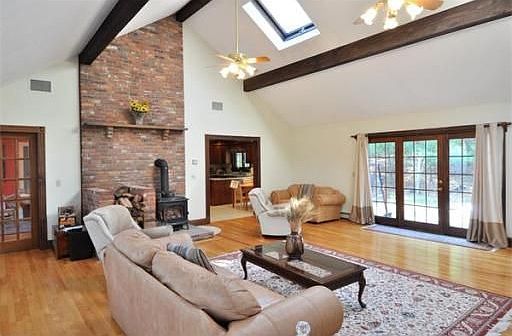 Quality Colonial home has LARGE ROOMS, C/A. 1st flr office or 4th BDRM & adjacent FULL BATH! GREAT ROOM: cathedral ceiling, skylights, deck,WOOD STOVE! French doors to FORMAL DINING: elegant fireplace. Gleaming HARDWOOD! Tiled kitchen & baths. NEW Kitchen GRANITE COUNTERS, newer S/S appliances. MUDROOM w/laundry & pantry: washer/dryer incl. Large Master Suite, sitting area, large walk-in closet w/built-ins, master ba w/double vanity. FINISHED LL REC RM. Unfinished 3rd flr walkup. NEWER ROOF & VINYL SIDING.