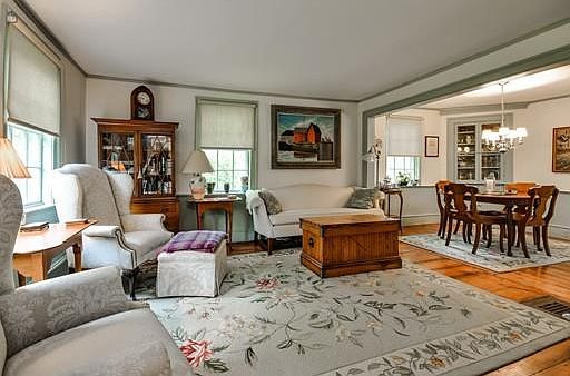 Incredibly charming and well cared for center chimney antique cape, historically known as "The Onion House". This delightful home is conveniently located in a fabulous in town location. The interior is bright and sunfilled throughout, with wide pine floors, four fireplaces eat in kitchen with huge pantry, first floor office and nooks and crannies galore. There are many updates including systems, new septic (2015), newer 2 car garage with loft storage above, central air and newly paved driveway (2016). There are 2 huge decks overlooking lovely, level grounds perfect for gardening and play. The comfortable ambiance throughout offers a perfect opportunity to live in a desirable community and a very affordable price. The curb appeal is fantastic! A real gem!!