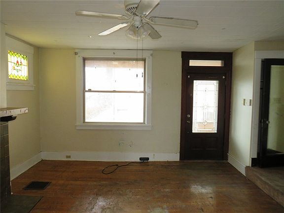 Brick half double with a front covered porch and a one car detached garage. Lots of old world charm with french doors leading into the dining room, stained glass windows, and a fireplace in living room. Full, unfinished basement for added storage space.