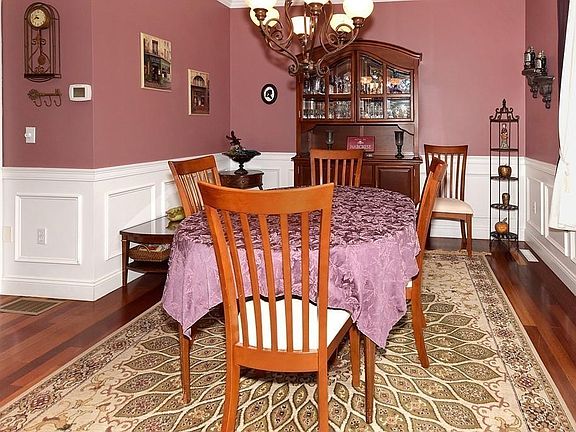 Custom built 4 bedroom colonial with Brazilian Cherry hardwoods and crown molding throughout, formal living room with arched doorway, family room with tray ceiling and fireplace, formal dining room, open kitchen with eat-in area and marble back-splash, first floor laundry, private, spacious Master Suite offers, fire place, walk-in closet, huge master bath with Jacuzzi tub, separate shower, double vanity, 3 additional large sized bedrooms and additional full bath on second level, partially finished basement with office/exercise room, central air, in-ground sprinklers, composite deck with large gazebo, 3 bay garage, nicely landscaped, fenced yard. Natural gas boiler new in 2012,