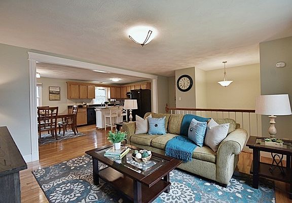 Beautiful and remodeled split entry in North Milford. This home is move in condition. Spacious rooms with good flow. Large living room with picture window opens to updated kitchen with nice cabinets, granite counter top, black appliances and kitchen island with 2 chairs. Dining area with exterior access to covered in deck and exterior deck with stairs to the backyard. Gorgeous hardwood floors in the living/dining/kitchen areas and hallway. Big master bedroom with closet and updated half bath. Large 2nd bedroom with closet. Spacious 3rd bedroom with closet. Updated and freshly painted full bathroom with newer vanity. Carpeted front to back family room with wood burning fireplace and 2 closets. Large, carpeted bonus room or office. Utility room with washer and dryer hook ups and access to garage. Convenient location with easy access to rts 85, 90, 135 and 495. One exit on 495 from the MassPike. Dell EMC near by. Milford Center close by. Mins to shopping centers and restaurants.