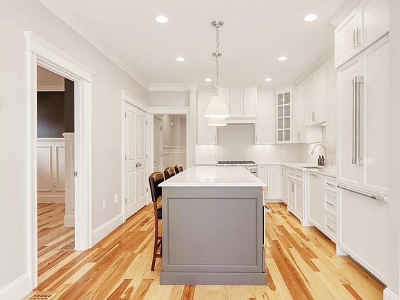- Kit Dscrp: Main Level, Flooring - Hardwood, Countertops - Stone/Granite/Solid, Kitchen Island, Stainless Steel Appliances, Open Floor Plan, Recessed Lighting, Gas Stove, Lighting - Pendant, Crown Molding