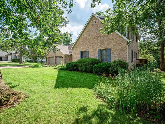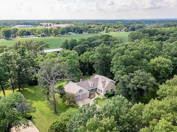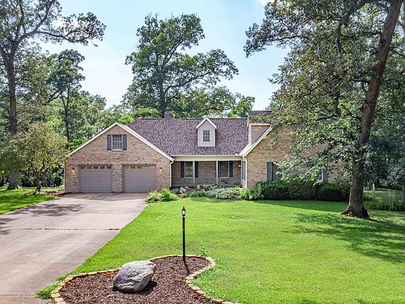 Gorgeous 5-6 bedroom, 3.5 bathroom mostly brick home with a spacious 4-stall garage nestled on a 1.19 acre wooded lot! This home is located in Hoffer Oaks subdivision, which is a beautiful, low-traffic neighborhood with many mature trees. Perfectly situated just moments from the I-74 ramp, convenience is at your doorstep, offering swift access to anywhere you need to be. The main level features a versatile layout including a 25 x 13 eat-in kitchen, a generous sized 25 x 15 family room, and two bedrooms. One bedroom was converted from a living room by adding a closet, while a full bathroom and convenient laundry room complete this level. Upstairs, three additional bedrooms and two full bathrooms await, including an expansive 33 x 13 master suite with a 14 x 7 closet and an additional 7 x 5 closet. The finished basement offers more living space with a theater room, rec area, half bathroom, and an additional bedroom or office. Outside, enjoy the expansive yard featuring a fenced area, basketball court, raised garden beds, and various fruit trees. Entertain effortlessly on the 26 x 23 deck overlooking your private oasis. With over 4000 square feet of finished living space, this home also features dual furnaces and central air units for personalized comfort, updated water filtration, a generator for peace of mind, and a radon mitigation system already in place. Community well water is $300 per year. Septic pumped in July 2023.