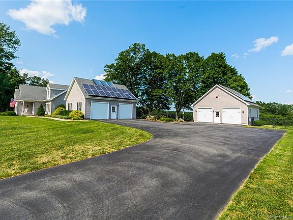 Amazing opportunity to own an Energy Star Certified home!!! Seller owned solar system and geothermal heating/cooling are just the start of what will keep you comfortable and save you tons of money throughout the year. This stunning 3 bedroom, 3 bathroom home has gleaming hardwood floors throughout the first and second levels with oversized windows which allow for tons of natural light. Upon entering, you are welcomed by a large living area with propane fireplace perfect for those cold winter nights. There is a formal dinning room to the left of the front entry which has custom built-in shelving and a gorgeous coffered ceiling. Access to the kitchen is off of the living area with a great eat-in space and breakfast bar. Some of the other highlights include stainless steel appliances with tons of counter/cabinet space. Expand your living space through the slider onto the rear deck overlooking the perfectly manicured fenced in yard, great for entertaining! First floor large master bedroom has a walk-in closet and oversized bathroom which features dual vanities with quartz countertops, a soaking tub and walk-in shower. An additional first floor bedroom could be a possible in-law set up or a great home office. Second floor has 2 spacious bedrooms along with a full bathroom and an additional family/bonus room. No lack of garage space here, 2 car attached garage and an additional 2 car oversized detached garage, both are insulated and feature propane radiant heating systems.