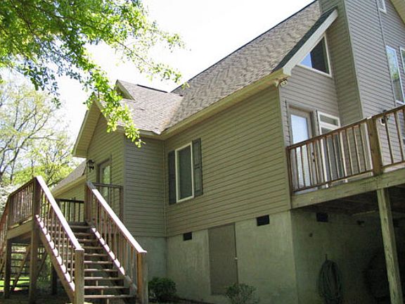 This 2362 SQ FT, two-story, vinyl-sided home built in 1999 is located on a quiet cove within a gated community and is well designed with 4 BR, 3 BA, an open floor plan, and Berber carpet and tile. A platform upstairs overlooks the downstairs and could be used as an office. The main floor features a great room with fireplace, dining area and kitchen, and the Master Suite. Enjoy beautiful views from the screened porch and deck. Property comes with septic service and 300' deep private well as well as a metal-frame boat dock with open slip. BEING SOLD FURNISHED with GOLF CART and LAWN MOWER.