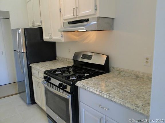 Bright upper 2 bedroom unit that has been recently renewed. Newer Stainless Steel appliances-sink, counter tops, floor, Bath-vanity, sink, floor. Fabulous view from the back deck. Vaulted ceilings in living room-dining room-kitchen-hall. Complex has a large beautiful pool, tennis courts, playground. Clubhouse has a workout room for only a $50 annual fee. Two blocks to center of town, library, theaters, parks, restaurants, shopping. Heat, hot water, and gas cooking INCLUDED in rent. Outside totally renovated. Laundry in basement. Reserved parking spot #121. Ridgefield just declared 4th SAFEST TOWN IN THE UNITED STATES, 1ST in CT. Unit has just been totally painted.