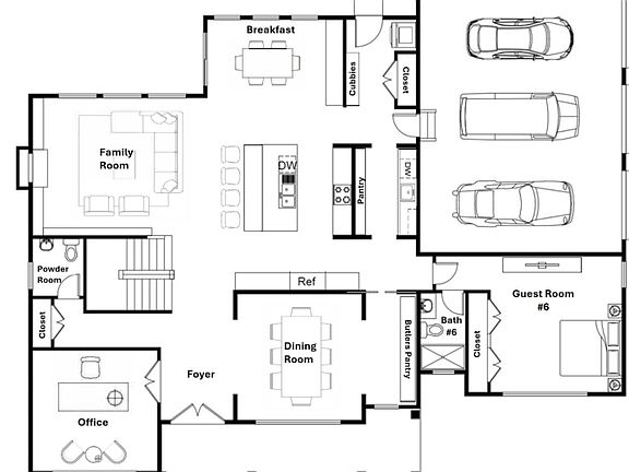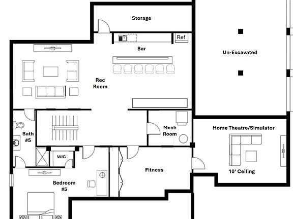 - Bedroom, Rec Room, Media Room, In-Law Floorplan, Den, Kitchen