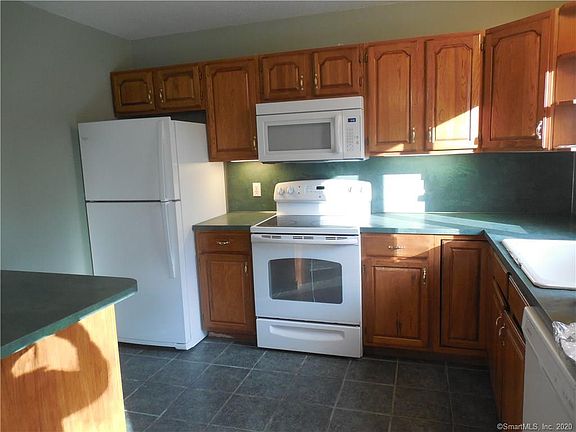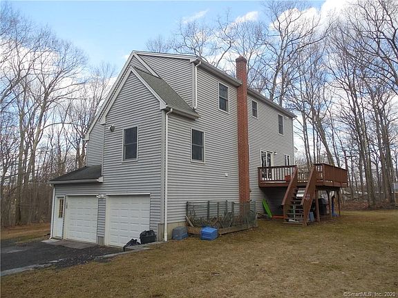 Spacious raised colonial in private location in East Hampton. This 1995 built home is 1892 sq. ft. with attached walk in 2 car garage. Open and spacious kitchen with breakfast bar, microwave, dishwasher and stove with plenty of counter space. Glass doors in dining area to deck overlooking back yard. Stone fireplace in main living room with freshly finished hardwood floors. Partially finished lower level could be another family room, home office area or extra storage space. 1-2 bedrooms on main floor with full bath/tub, 2 spacious bedrooms on second floor with full bath/tub. Central air, economical heat with thermopane windows, nice size yard. Laundry is on premises. NO pets or smoking.Good credit and references is a must! Close to schools, shopping, Lake Pocotopaug. Clean and ready for a new tenant asap!