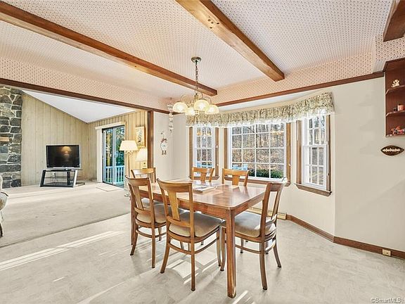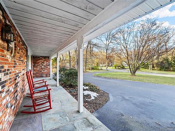 Beautifully sited and conv loc in the sought-after Daniels Farm section of town, close to schools, parks, shopping, great restaurants, & highways. Extremely well-maintained double wing colonial w/ newer circular driveway & front covered bluestone porch on a level, one-acre lot. Large formal entry foyer w/ updated flooring. Oversized EIK w/ custom cherry wood cabinetry, tiled backsplashes, & stainless appliances. Kitchen also offers a large dining area w/ a bay window that overlooks the private & picturesque rear yard. Kitchen opens to the FR w/ cathedral ceiling & skylights, and an impressive floor to ceiling natural stone wood burning fireplace. There are also sliders leading to the bluestone patio from the FR. The formal living room & dining room offer hardwood flooring, upscale trim & millwork. The enclosed cedar three season porch with floor-to-ceiling windows is not included in the square footage, but what a beautiful room to sit back with your morning coffee and relax on those gorgeous days. This room also opens to the large Timber Tech deck. Many windows, skylights, and sliders make this an extremely sun filled home. You will also find hardwood floors in the upper level. The master bedroom features two large closets, a vaulted ceiling, and a remodeled fully tiled ensuite bath. There are three other generously sized bedrooms each with great closet space plus an additional remodeled full bath. Features list, property map, and updates have been added to the supplements.