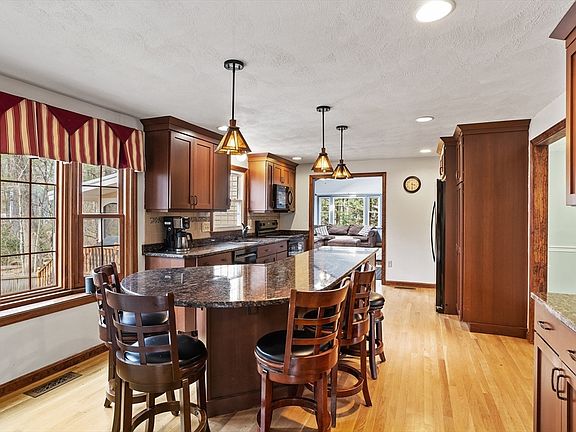 Picture perfect 4 bedroom 2.5 bath colonial on over 2 acres of land with everything you could want in a family home. All on a sweet little cul-de-sac of 11 homes, on the east side of Groton. There is a huge cathedral ceiling family room with a fireplace and hardwood floors off the beautifully remodeled kitchen. A 3-Season porch, off the family room overlooks a nicely fenced backyard complete with a stone patio and firepit. The spacious dining room and front to back living room create all the space a busy family could need. Upstairs there are 4 nicely sized bedrooms, and 2 beautifully remodeled baths. The primary bedroom has a nice big walk in closet and it's private bath has a double shower and a big soaking tub. The lower level has a finished room that could be a playroom, exercise room or a great office. Also another bonus room/area with a dog bath or big utility sink. Newer Buderus furnace and great storage in the unfinished area! This home has been loved and maintained.