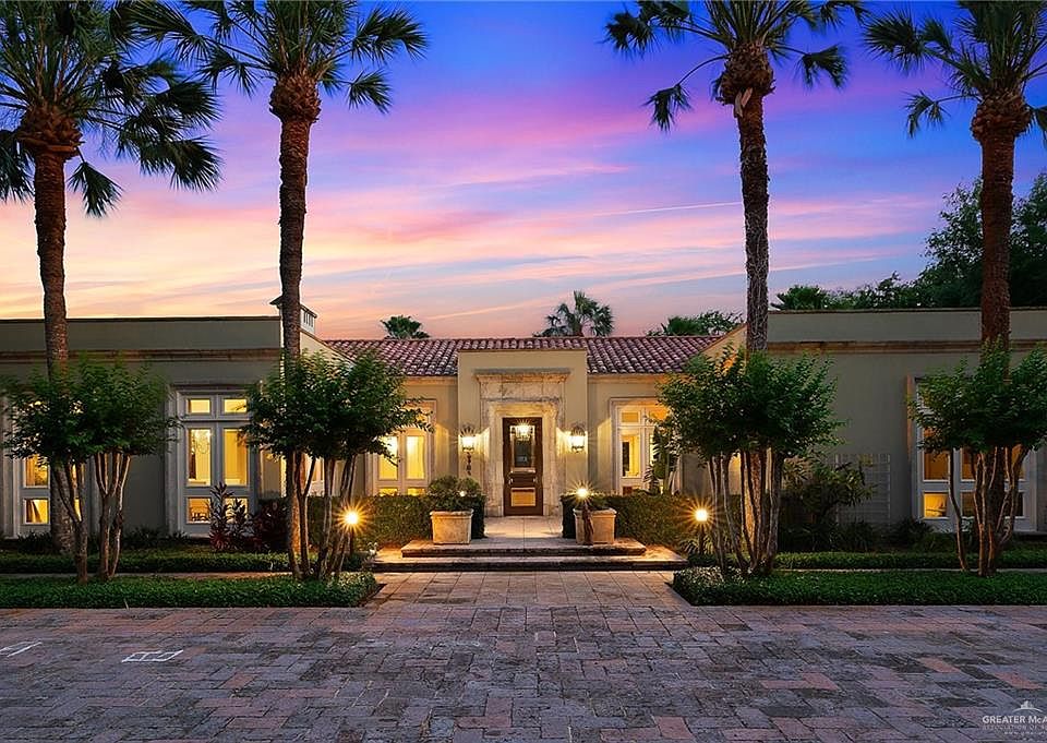 9 Old Orchard Road was exclusively commissioned with unmistakable architectural style, luxurious finishes & a complete understanding of the land. The home sits with its massive Cantera entry and façade facing North and maximizes the distinct dimensions of the almost 3-acre lot. The property has 3 living areas and a casita with 2 bedrooms and a living room, a mosaic tile pool, a motor court, 4 car garages, a library and private office, formal dining, a service entrance, and a butler’s pantry. Located just South of the McAllen Country Club, this spectacular estate is a unique masterpiece.