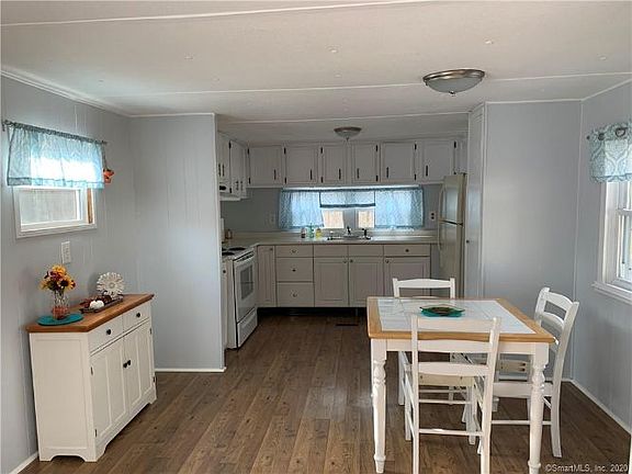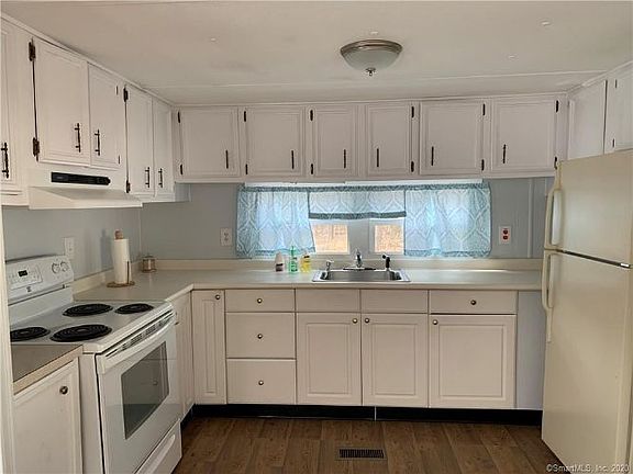 If you are 55+ and have been waiting for an opportunity to join the Rolling Hills Community in Storrs, don't miss out on this beautifully updated mobile home. The entire home has a fresh coat of paint (including the walls, ceilings, and cabinetry), and the trim has been updated and painted, all of which give this home a clean, brand new look! Additional updates include a new furnace in 2019 and a new hot water heater in 2020, as well as new outdoor skirting in 2020. Newer style windows and central air conditioning will keep you warmer in winter and cooler in summer. The roof was replaced in 2007. The mobile home is situated on a semi-private lot that backs up to a bank with trees. There is also space for a vegetable garden, flower bed, and shed. The park is centrally located and only minutes away from UConn, shopping, banking, medical facilities, bus line and more. Park amenities include an in-ground pool with clubhouse and picnic area. The monthly park association fee is $418. There is an additional water fee of $42 per month. Park approval is necessary, and pets are allowed provided they meet management criteria.