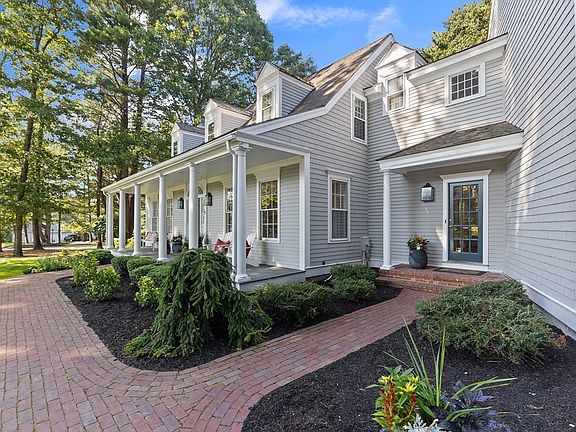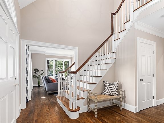 House Beautiful! Cape style home with fabulous front porch and 4800 SF of living space on a pretty tree lined cul-de-sac in the much desired Great Hill neighborhood. CLASSIC floor plan including a gracious 2 story foyer, sunny living room w/window seat, large dining room w/wet bar, gorgeous white kitchen w/marble counter tops, high end appliances and cozy dining area (w/FP) OPEN to the beautiful family room w/cathedral ceiling with FP and a wall of French doors. A private home office tucked away and coveted mudroom w/cubbies and half bath complete the first floor. Upstairs there are 4 bedrooms and 3 full baths including a lovely primary suite w/luxurious marble bath. Beautiful custom millwork and high ceilings throughout. Large finished lower level w/game room and gym and an oversized garage w/epoxy floor and storage system. Private back yard w/large deck, mature trees and lawn space. Convenient location 1.3 miles to the train station in one direction and the playground in the other!