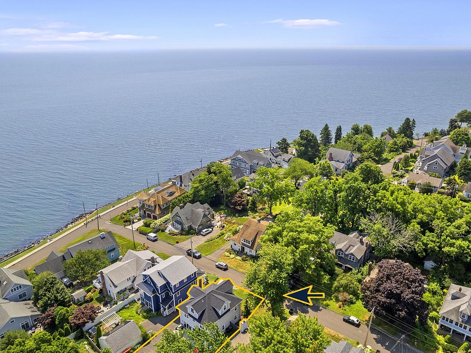 Welcome to your dream getaway! This fabulous 3 bedroom 3.5 bath home boasts an impressive 3,200 sq ft of stylish living space, and just 3 houses to Long Island Sound. With breath taking water views from multiple levels, this property is perfect for year round living, summer retreats, or weekend getaways. Ideal for Air BNB as well. The fabulous chef's kitchen boasts an extended island and breakfast bar, complemented by stainless appliances including the beverage fridge and granite counter tops and flows seamlessly into a generously sized Dining Room. The main level Family Room has sliders to a beautiful deck and fenced yard, creating an inviting outdoor oasis. Completing the first floor is a Formal Living Room with fireplace and Powder Room. Brazilian Cherry Hardwood floors throughout and surround sound in the main living areas. The second level has a central media room for movie watching or reading and two perfectly sized bedrooms, one with a full bath making it an ideal Guest Room. A large laundry room with sink and plenty of storage is also on this level. A fabulous private Primary Suite on the third floor is accented with a vaulted ceiling and showcases a spa inspired full bath with soaking tub, Bedroom area with sliders to Juliette balcony, walk-in closet, and office area with sparkling water views New roof. No flood insurance required. A short stroll to Morningside Park with playground, ball field, tennis courts, and community float. Close to Metro North train and Green.