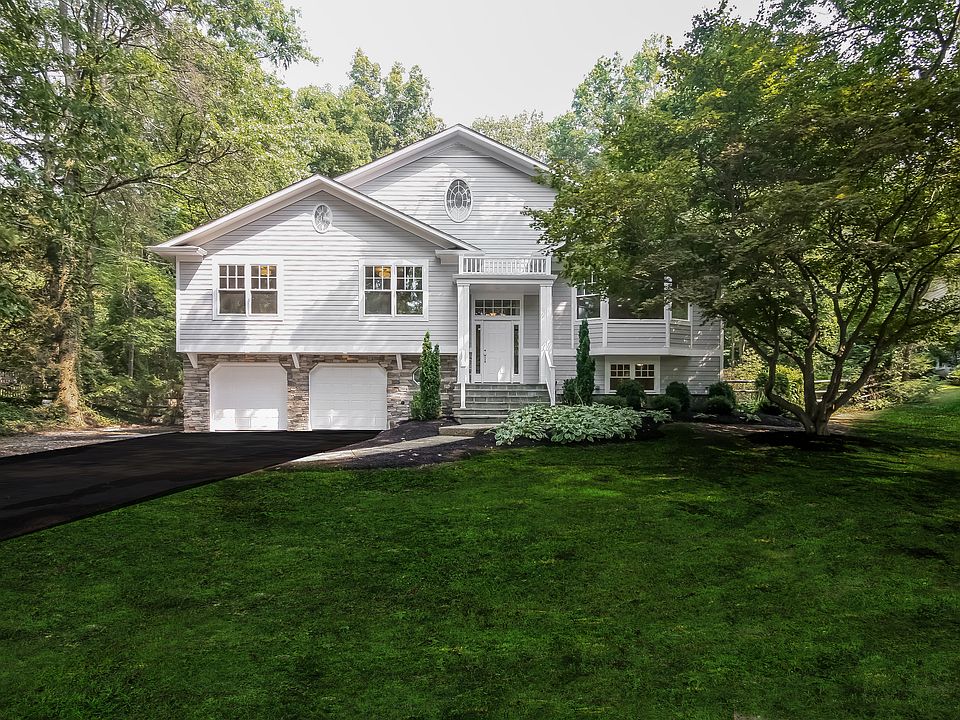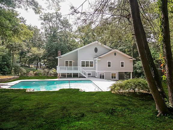 This crisp, clean & ready to move in modern renovated/expanded home by the prominent Cobble Creek Builders is on 1 acre of mature property on a cul-de-sac. The private backyard is tranquil & serene. Pristine in-ground pool w/ diving board & waterfall. Large covered deck, blue stone patio & sport court complete the backyard. The open concept main floor is fresh & inviting. Dark hardwood floors throughout, thick crown moldings, wide windows & flat panel wainscoting make the rooms feel expansive & sophisticated. Huge white marble island, new stainless steel appliances & built-in breakfast nook make the kitchen stylish & sleek. Living room w/marble fire place & big bay windows provides a fantastic flow for entertaining. 4 bed/4 baths on main fl. Bright lower level w/full bath, study, mudroom w/built ins & laundry room. With an addl 900 sq ft of potential space there is nothing this home doesn't offer. 1 year builder warranty. 38 Min train to NYC! Award winning Schools.
