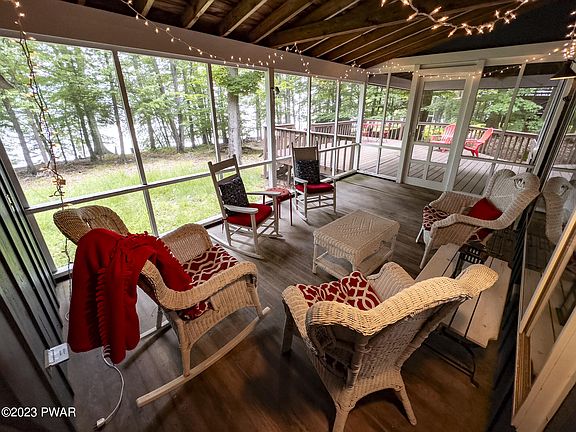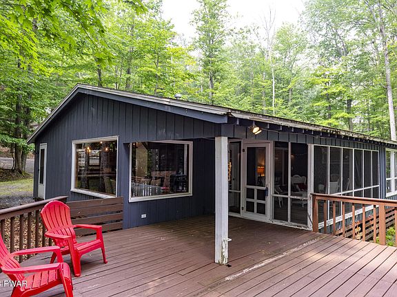 This charming three season cottage sits on a 0.42-acre wooded lot with 150 feet of shoreline and is one of the flattest lakefront properties on Lake Wallenpaupack. This updated 3-bedroom cottage features a recently remodeled kitchen including microwave, stove, stacked washer/dryer, and dishwasher. The living room has an attractive gas stove which heats the entire cottage when needed. New laminate flooring gives home a rustic feel. A roomy screened in porch provides terrific views of Lake Wallenpaupack. A shed provides for storage of lake toys. No dock, but currently has dock and buoy permits. The Sill plate On Right Hand Side Of House is being replaced., Beds Description: Primary1st, Beds Description: 2+Bed1st, Baths: 1 Bath Level 1, Eating Area: Dining Area, Eating Area: Modern KT, Beds Description: 1Bed1st