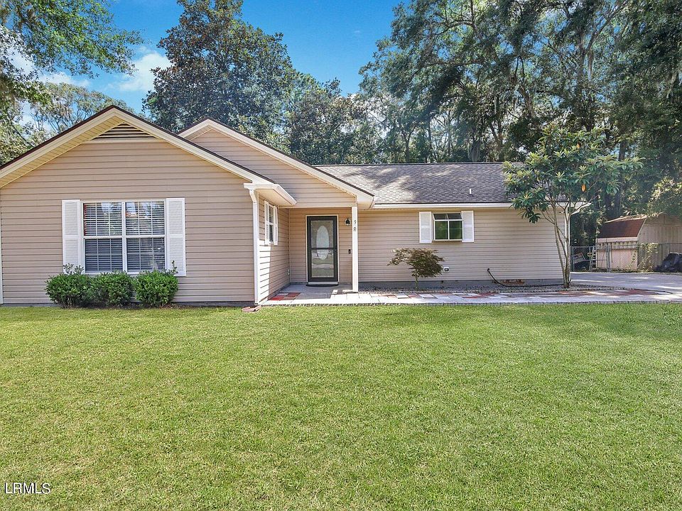 Back on Market to no fault of the sellers, buyers financing fell through. A 3 bed, 2bath home with a half acre fenced in lot! NO HOA, Centrally located to downtown Beaufort and the military bases. Vaulted ceilings with beams. Kitchen has Stainless steel appliances in an open concept kitchen. All hard wood/luxury vinyl throughout the house. Large master bedroom with a huge walk in closet with a master bathroom with a shower/tub combo. There is a flex space that is usable as well. In addition there is a 10x10 storage shed with loft in the backyard.