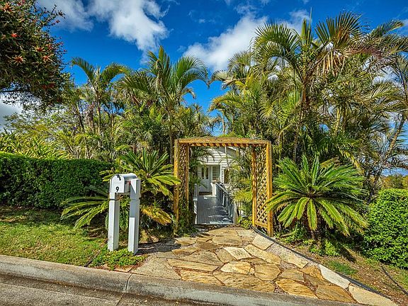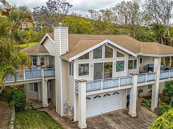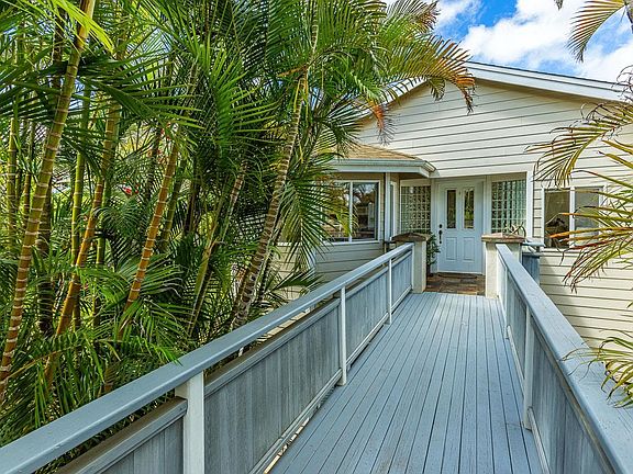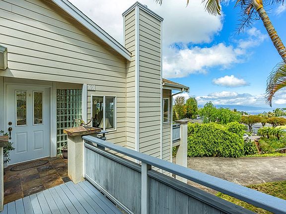 Situated on a magnificently landscaped 18,086 s.f. corner lot in Kula’s revered Kulamanu subdivision, this 4 bedroom, 3.5 bathroom, 2,280 s.f., 2-level custom home enjoys lovely West Maui Mountain & coastal ocean views. Passing through the decorative entry trellis there is a rather unique bridge to the front door. The front entrance features 2 vertical leaded glass panels & is bordered on both sides by concave glass-block columns. The main living, kitchen, & dining areas are filled with light as the West-facing great room wall is virtually all glass. There is a custom stone fireplace with a double-edged granite mantel. The kitchen's center island, surrounding counters & backsplash are all rendered in matching granite. The central living area feels uplifting as the cathedral ceilings soar in all directions. The main level primary bedroom, with its vaulted ceilings, spacious walk-in closet, & elegant en-suite bath, enjoys pastoral upcountry views & opens onto the West-facing lanai which features a lovely jacuzzi spa. A large den/mother-in-law guest suite, with separate access, on the lower level has an elaborate wet bar & a dedicated bathroom. There are 2 bedrooms downstairs that share another full bath. All 3 garage spaces have direct access to the house. A large backyard surrounded by lush mature landscaping is extremely private & serene. Kulamanu has all underground utilities & is extremely convenient to many of Maui’s finest schools, along with all the amenities of nearby Pukalani & Makawao! Many of Maui’s year-round residents & professionals prefer Kula’s temperate climate, & the quiet upcountry lifestyle that 9 Paliuli Place offers. This is a Great Opportunity for the right Buyer!